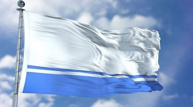«Утвердить Государственный флаг Республики Алтай в виде прямоугольного полотнища из четырех горизонтальных полос на всю длину, верхний белого цвета, нижний голубого, узкие полосы белого и голубого цветов»,