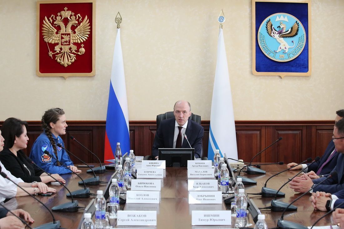 Глава Республики Алтай Олег Хорохордин во вторник, 23 апреля, в правительстве региона встретился с космонавтом-испытателем отряда Научно-исследовательского испытательного центра подготовки космонавтов имени Ю.А.