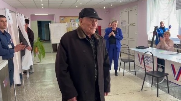 На одном из избирательных участков Горно-Алтайска 15 марта проголосовал один из старейших избирателей – участник Великой Отечественной войны Егор Панкратьевич Губернаторов, которому в апреле исполнится 101 год.