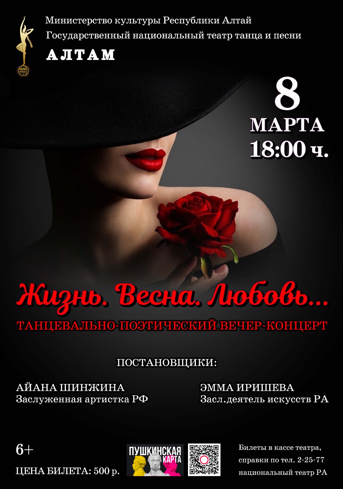 8 марта, в 18 часов, в Национальном театре, в Международный женский день «Государственный национальный театр танца и песни «Алтам» Республики Алтай представит танцевально-поэтическ