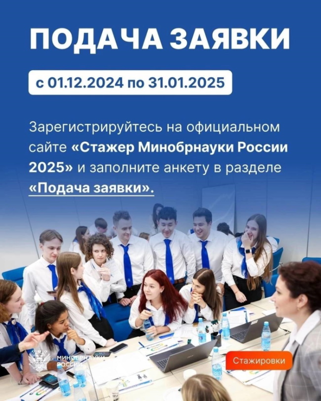 1 декабря 2024 года стартовал 3 сезон проекта подготовки кадров для государственного управления в сфере науки и высшего образования «Стажер Минобрнауки России».