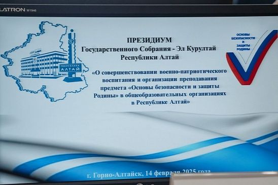 Сегодня, 14 февраля, под руководством спикера Парламента республики Эжера Ялбакова состоялось очередное заседание Президиума ГС-ЭК РА. Члены Президиума рассмотрели тему совершенствования военно-патриотического воспитания и организации преподавания предмета «Основы безопасности и защиты Родины» в общеобразовательных организациях в Республике Алтай. Главным докладчиком выступила и.о. министра образования и науки Республики Алтай Екатерина Чандыева .