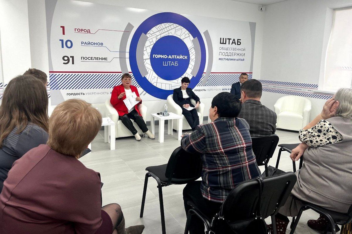 На базе штаба общественной поддержки Республики Алтай при участии мэра Горно-Алтайска Ольги Сафроновой состоялся старт проекта «Встреча с жителями МКД» В формате диалога-дискуссии участники обсудили взаимодействие меж