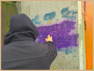 Волонтеры "Молодой Горный" провели акцию по закрашиванию уличной рекламы и объявлений о работе интернет-магазинов запрещённых веществ.