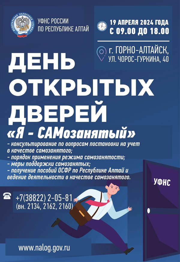 «Я САМозанятый!» - тема акции «День открытых дверей», которая состоится 19 апреля в УФНС России по Республике Алтай.