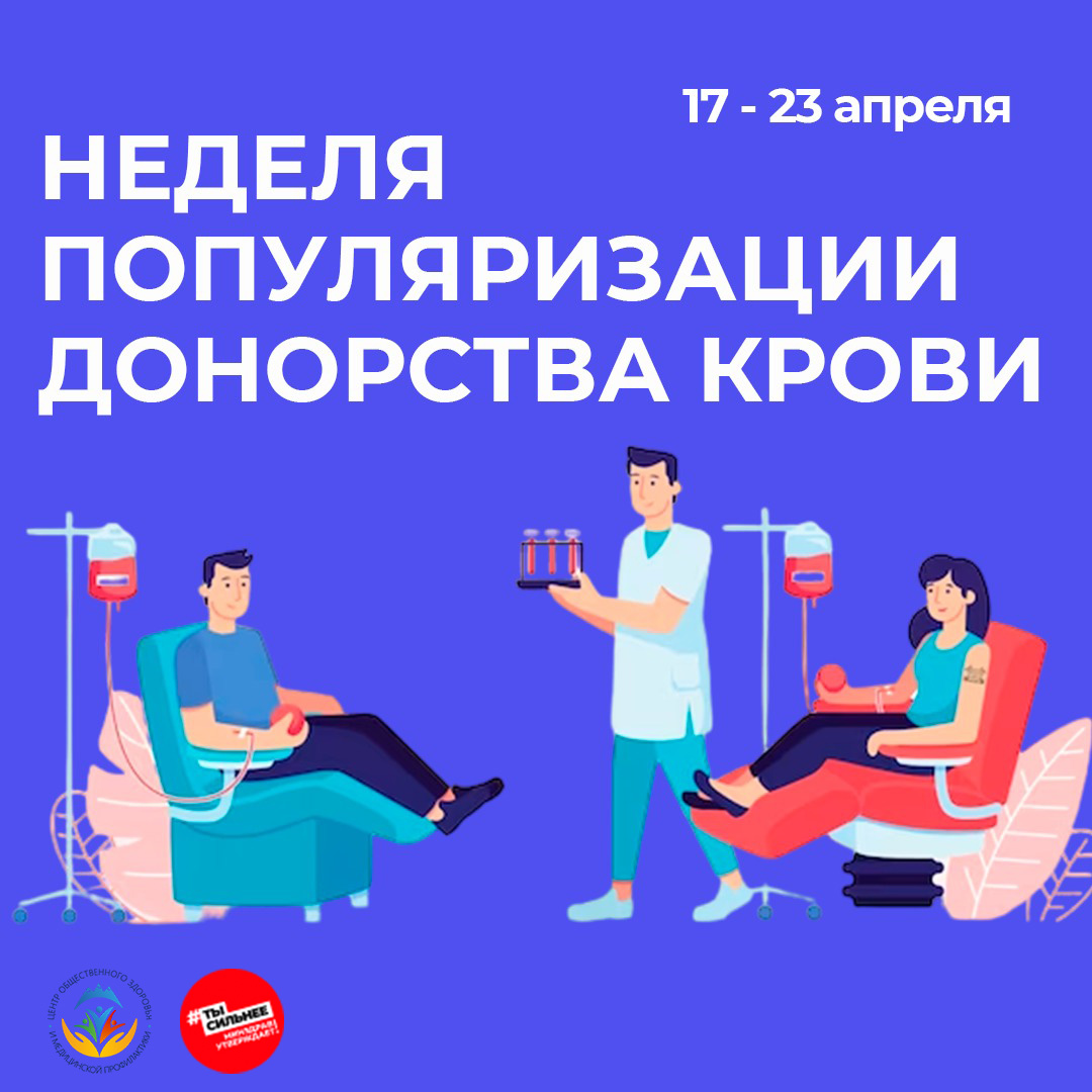 Неделя популяризации донорства крови 17 по 23 апреля 2024 года!!!