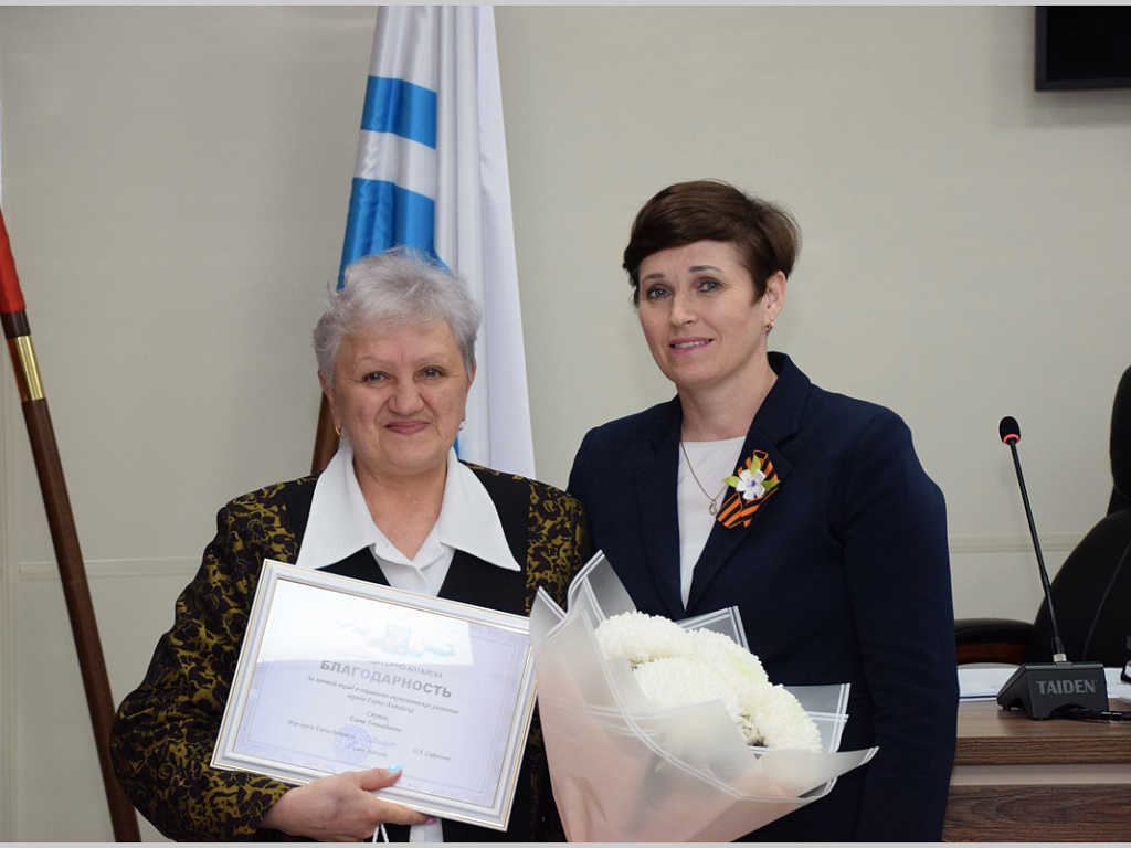 Елена Геннадьевна Ступак отработала в Администрации города 34 года, а Альбина Георгиевна Шитова - 17 лет. Прекрасные женщины, ответственные сотрудники, настоящий пример для подражания.