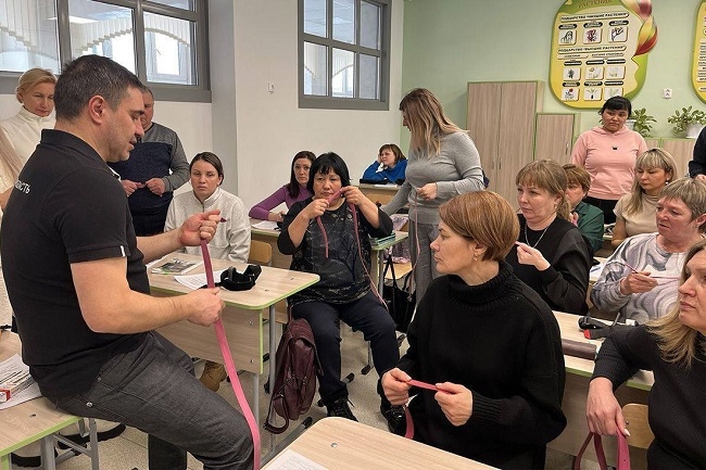 Также Дмитрий Хубезов провел для учителей курсы по оказанию первой помощи, рассказал, как накладывать жгуты и повязки. Педагоги разобрали элементы гражданской обороны и прослушали теоретический курс, а затем сдали базовый норматив ГСО – готов к санитарной обороне.
