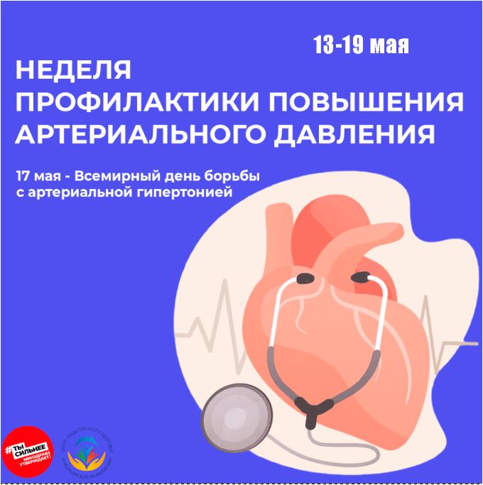 С 13 мая проходит Неделя профилактики повышения артериального давления (в честь Всемирного дня борьбы с артериальной гипертонией 17 мая)
